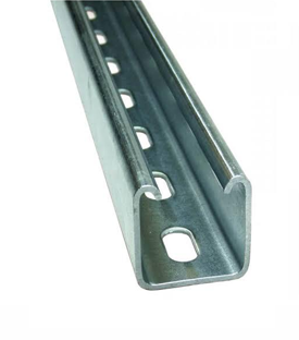 It is made from cold rolled steel that is zinc coated and passivated. The coating thickness is a minimum of 8 microns. They are available in standard or slotted rail and supplied in various lengths.